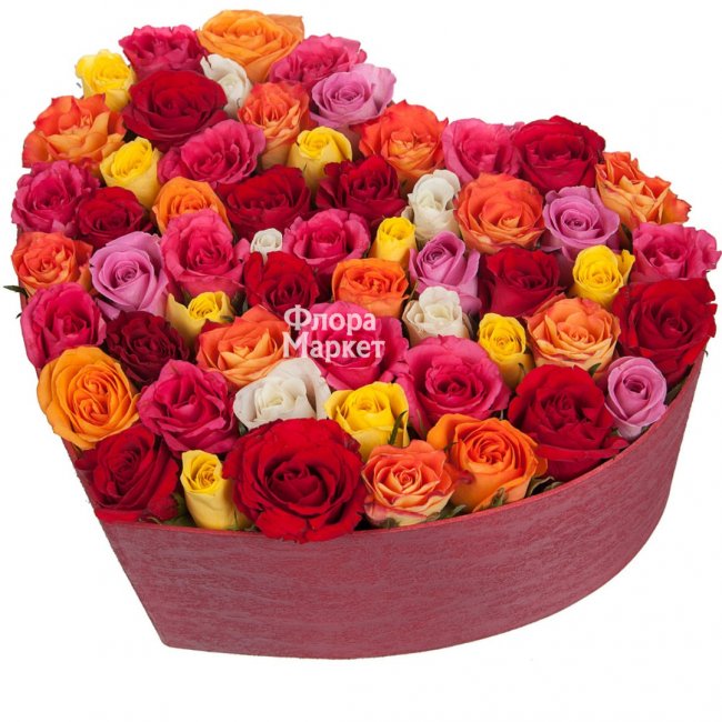 Коробка в форме сердца и розы микс в Петрозаводске от магазина цветов «Флора Маркет»
