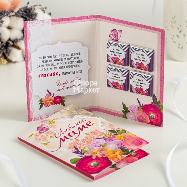 Открытка шоколадная в ассортименте в Петрозаводске от магазина цветов «Флора Маркет»